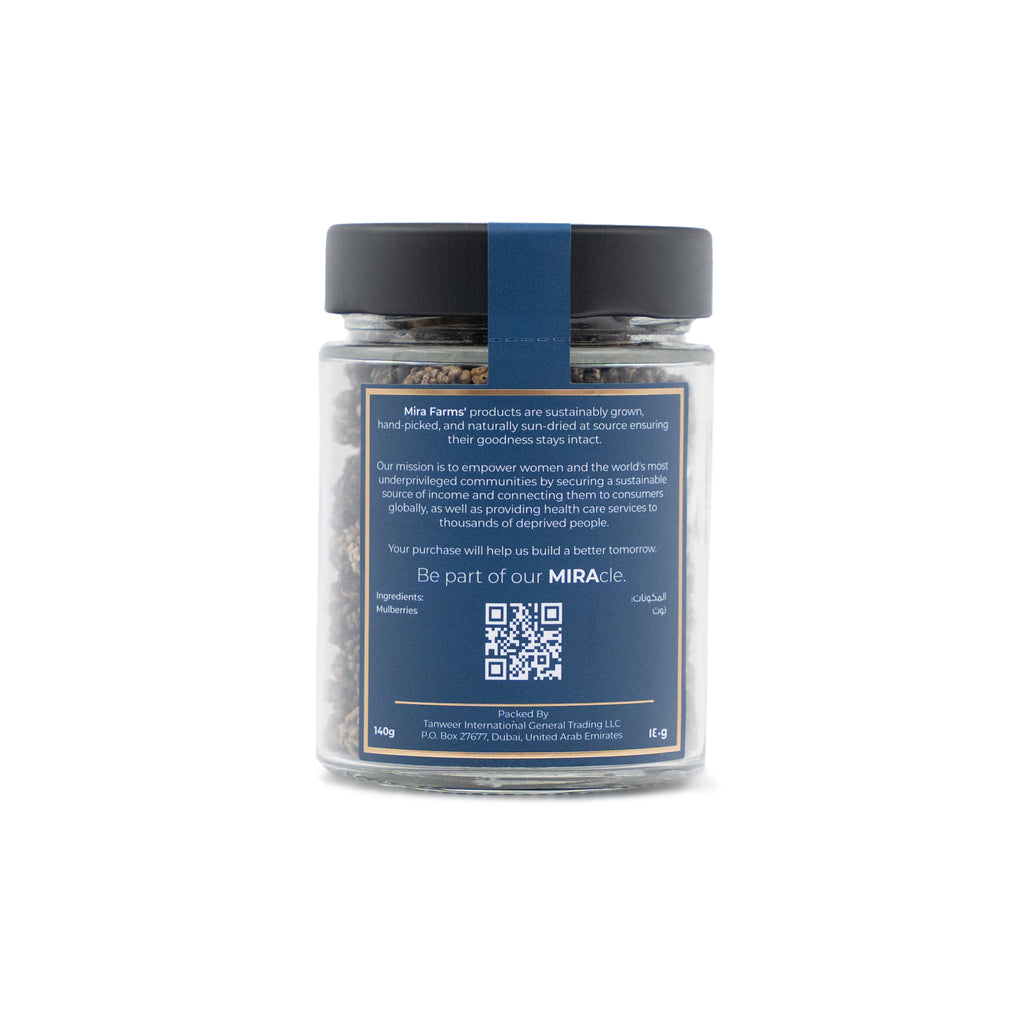 Our soft, sundried Mulberries are filled with vitamins and minerals, particularly vitamin C and iron. Very low in calories, these superfoods are known to improve blood sugar control, lower cholesterol, and reduce cancer risk. They are the perfect addition to granola or trail mix, pairing very well with nuts, dried berries, and coconut. Their natural sweetness also allows them to act as a sugar replacement when soaked in herbal or green tea. All of our dried fruits and nuts have been sustainably farmed, and are free from any kind of chemicals or preservatives.